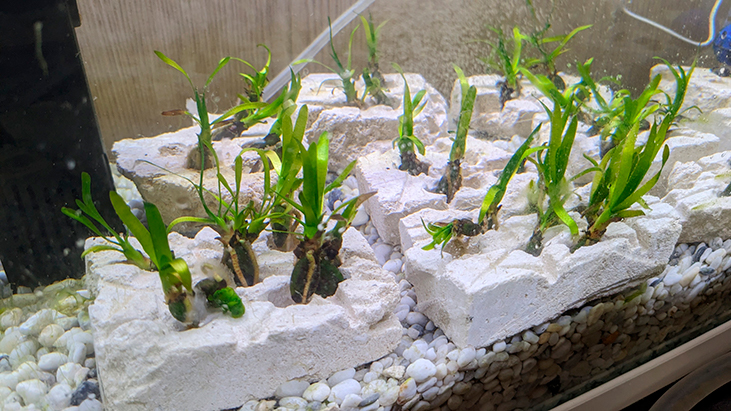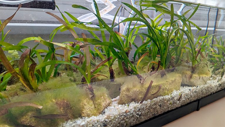Les llavors de Posidonia oceanica es fan germinar en entorns controlats, com peixeres, per assegurar un desenvolupament inicial saludable de les plantes joves abans de la seva replantació al mar.